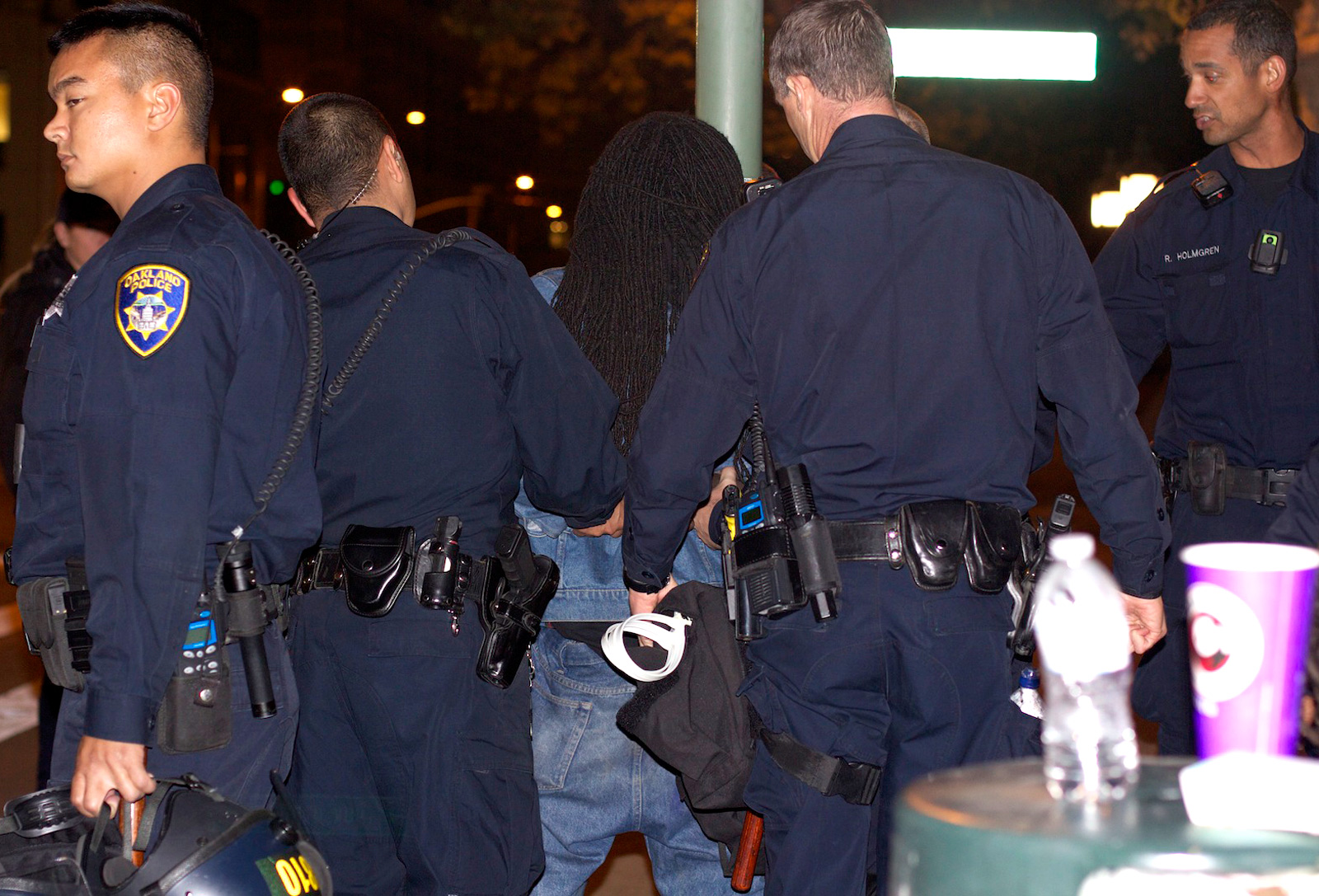 Nearby, a teenager said he was annoyed that the Occupy protests caused the re-routing of city buses. “I’m trying to get somewhere right now,” said Dionte Rockmore, 17, who lives in East Oakland. “They’re messing up people’s evenings.”