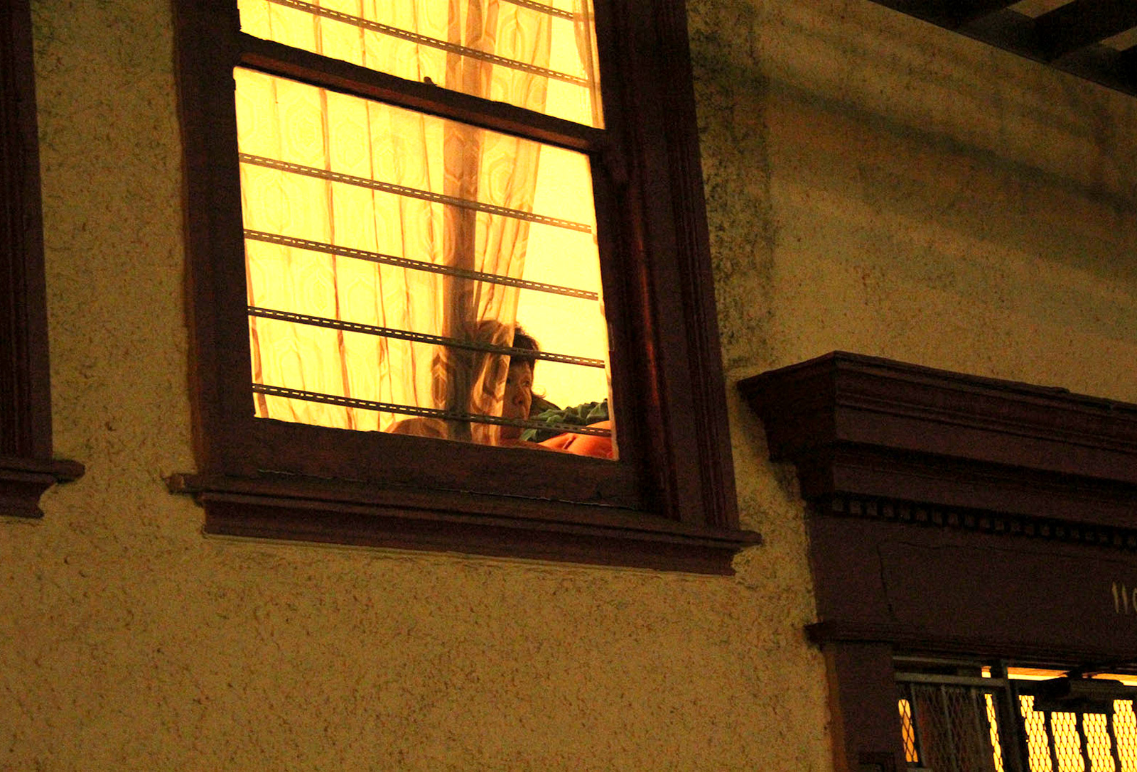 - A woman watches the march from her home. Photo by Steve Fisher.