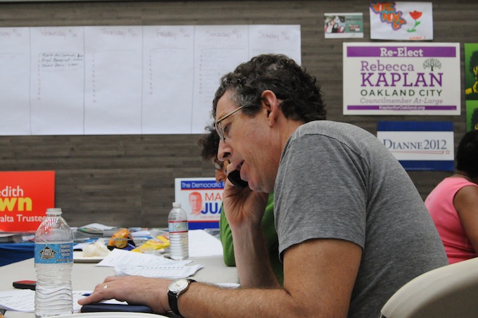 - Mike Napolitano, 50, of Oakland, calls potential voters on a recent day in late October, from Rebecca Kaplan’s campaign offices on 14th and Franklin Streets downtown Oakland, to urge them to re-elect Kaplan on November 6.