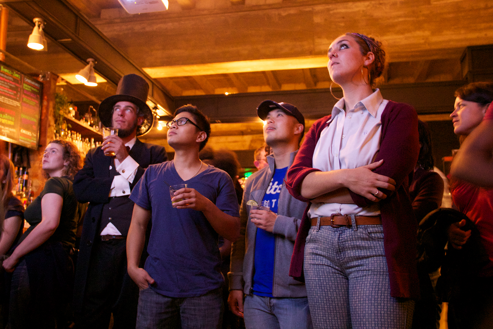 A large crowd at the New Parish watched first Governor Romney’s concession speech, then Obama’s victory address with raucous cheers. District 1 city council candidate Richard Raya, who at that point was in third place in his own race, watched Obama finish his address on the big screen at the New Parish. “His speech was beautiful,” said Raya. “He has a way of bringing together the diversity of our country together like no one I have ever seen. I’m just glad he was reelected.”