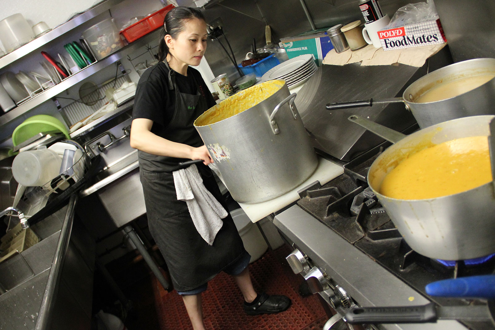 - Susan Pak prepares vats full of butternut squash soup, a side dish in the Thanksgiving special meal at The Breakroom Cafe.