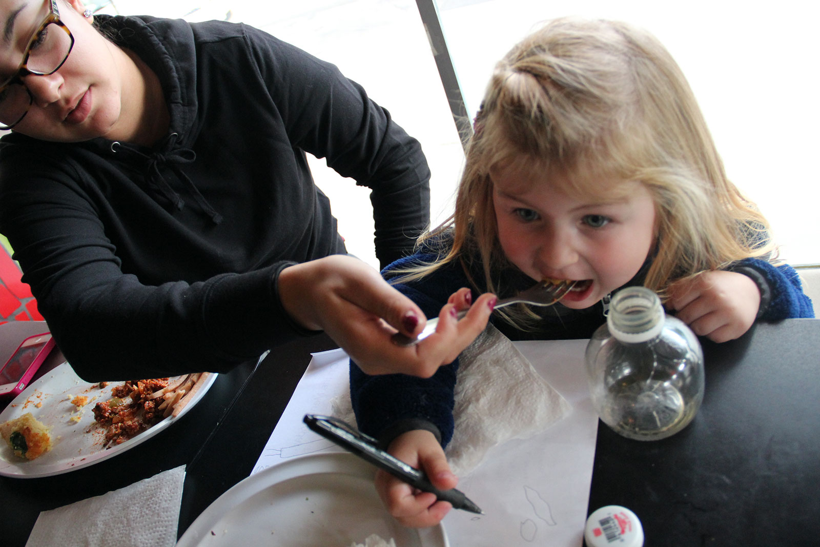 - Tiana Trutma and Naia enjoy a vegetarian Sloppy Joe and cornbread at The Breakroom Cafe.