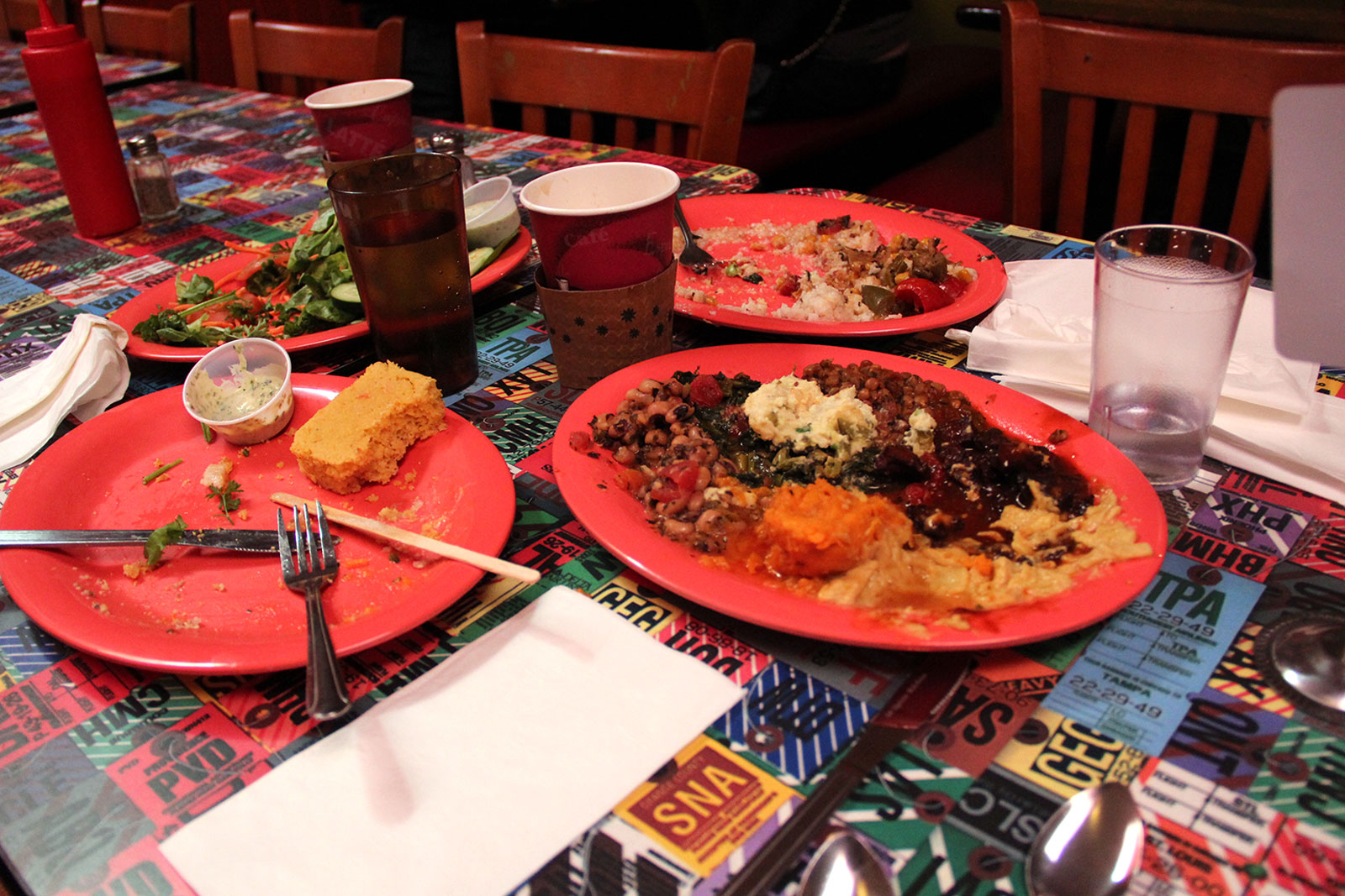 - Layers of leftover vegan soul food at Souley Vegan in downtown Oakland.
