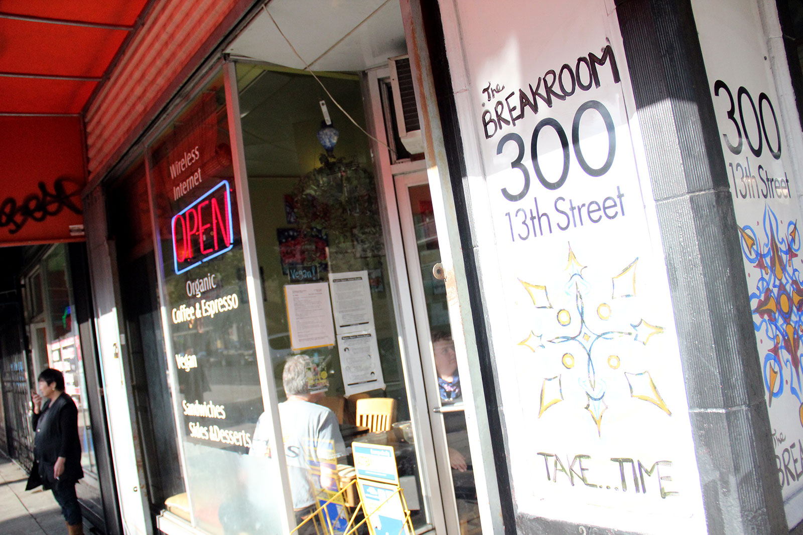 - Outside The Breakroom Cafe, a vegan joint on the corner of 13th Street and Harrison. The Breakroom rolled out its Thanksgiving menu five days before the holiday.