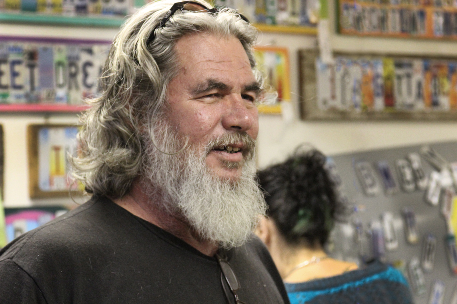 - Artist and Jingletown ArtsWalk co-founder Bill Silveira. His creative license plates are seen in the background.