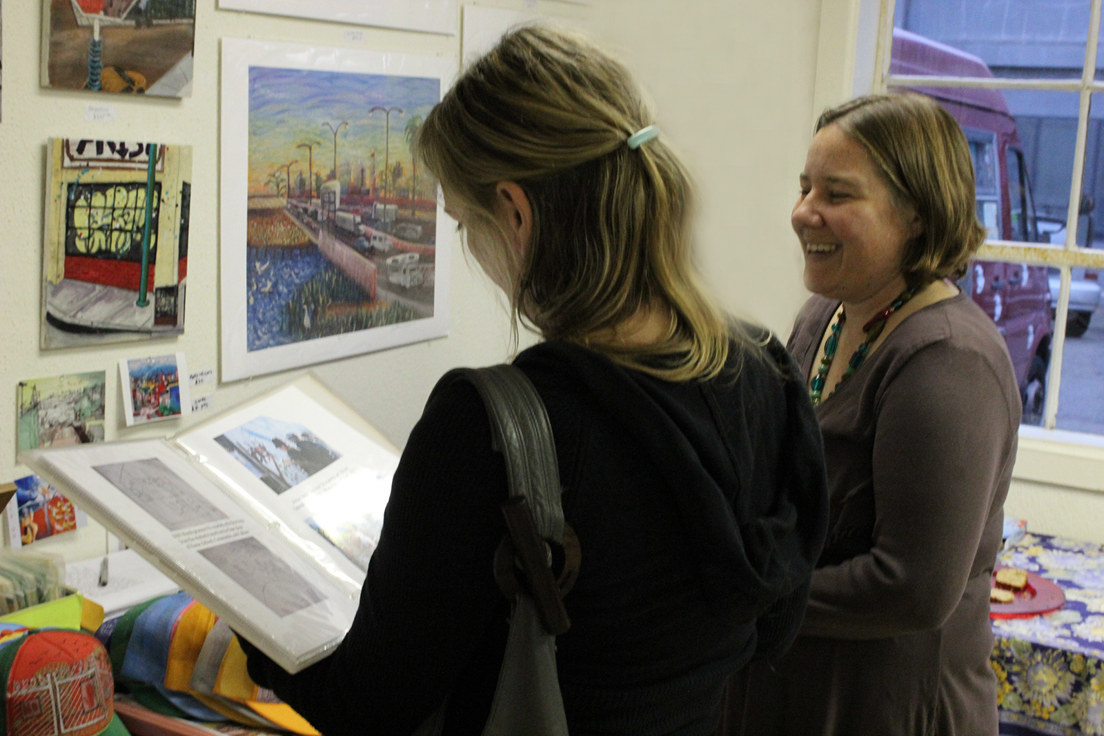 Cynthia Elliot, a founding member of the Jingletown ArtWalk, said the event was an effort to showcase local talent by turning the empty warehouses built along the Oakland/Alameda border into galleries. “ The warehouses along Glascock Street were going to be torn down and replaced by condos,” she said. “We wanted people to know that there is a thriving artist community here.”