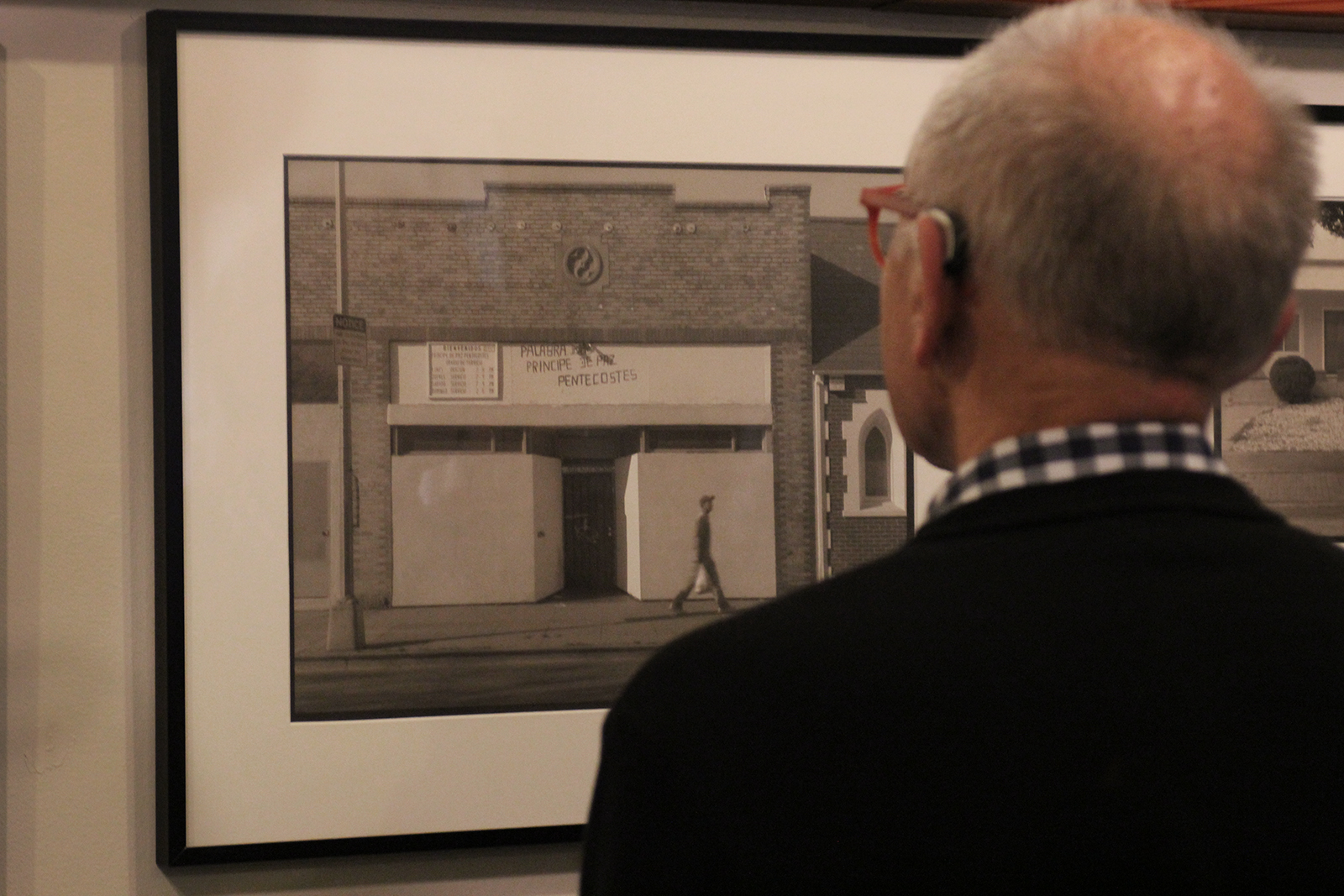 - Visitor John Jenson looks at the photographs of Eben Ostby on display in the Gray Loft Gallery.