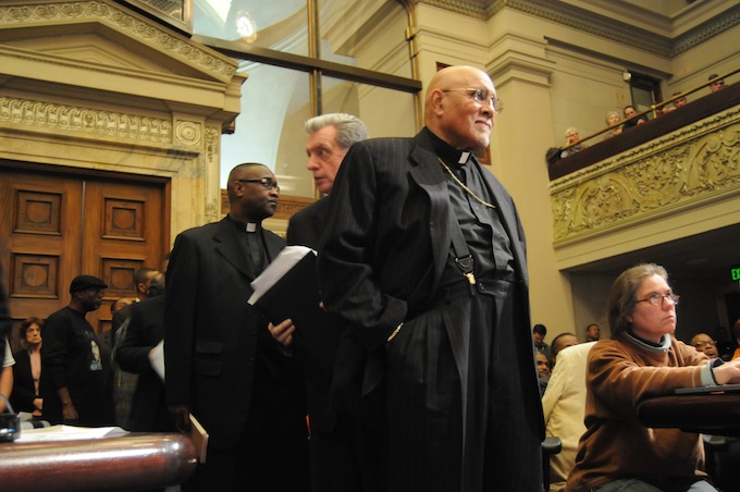 Several local faith leaders also came out in support of new policing strategies. “We don’t have enough police officers. 911 calls are going unanswered. It is time to do something,” said Bishop Bob Jackson of Acts Full Gospel Church in East Oakland. “This is out of control—our young black boys are dying. We need Bill Bratton to come in to better protect and serve our community.”