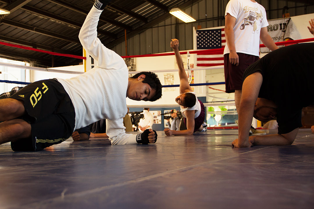- Students at the East Oakland Boxing Association worked out before Landry arrived.