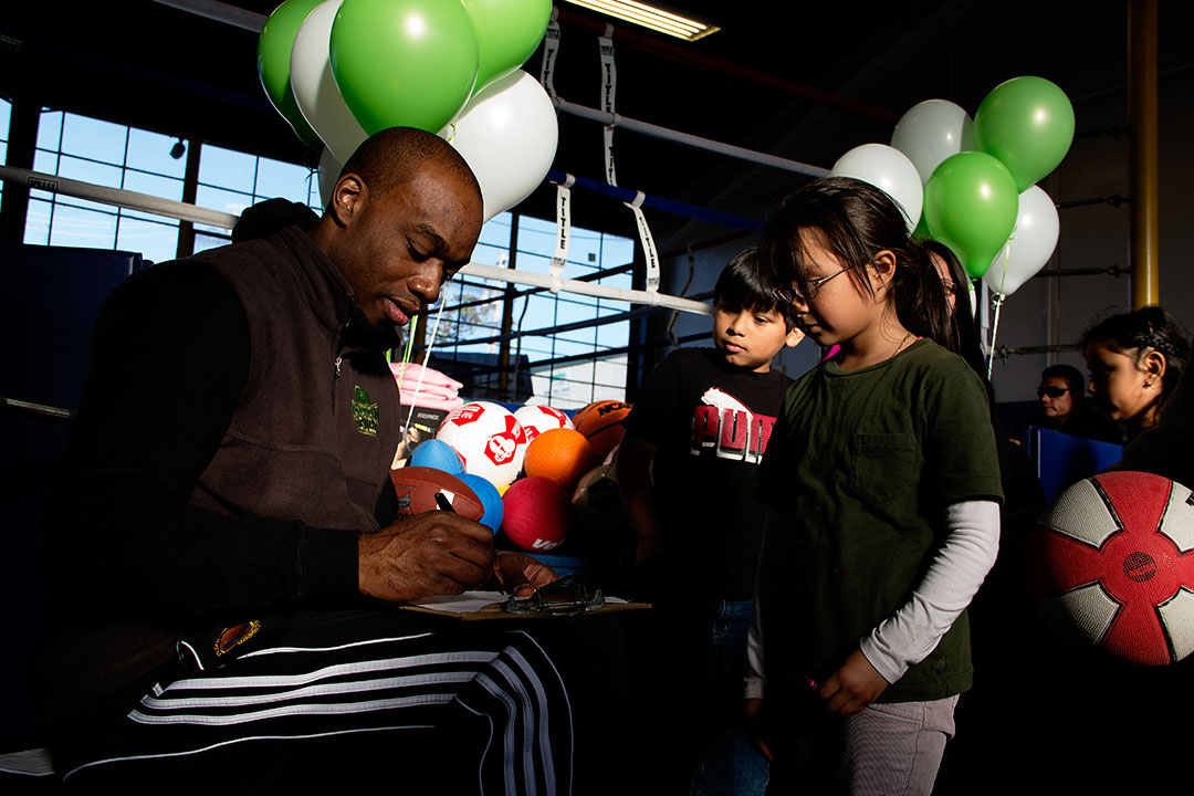 After talking about the importance of nutrition and exercise, Landry encouraged the kids to appreciate the donation. “That’s a lot of money, man,” Landry said, explaining that he would have benefited from such a donation when he was growing up in Wisconsin. “I hope you guys use it,” he added. “Stay fit. That’s something I do everyday.”