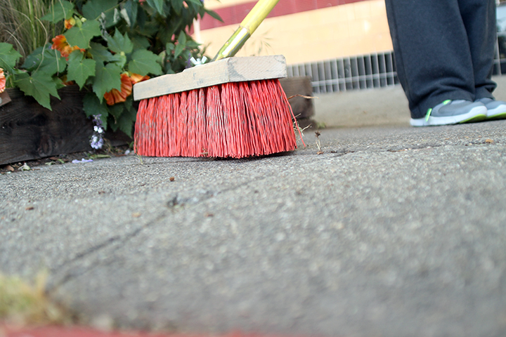 - Melissa Botello, an Oakland Resident, sweeps a sidewalk in honor of Earth Day in Oakland.