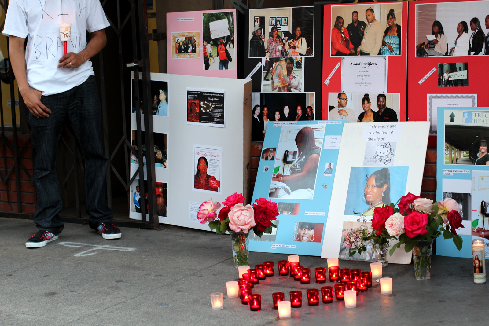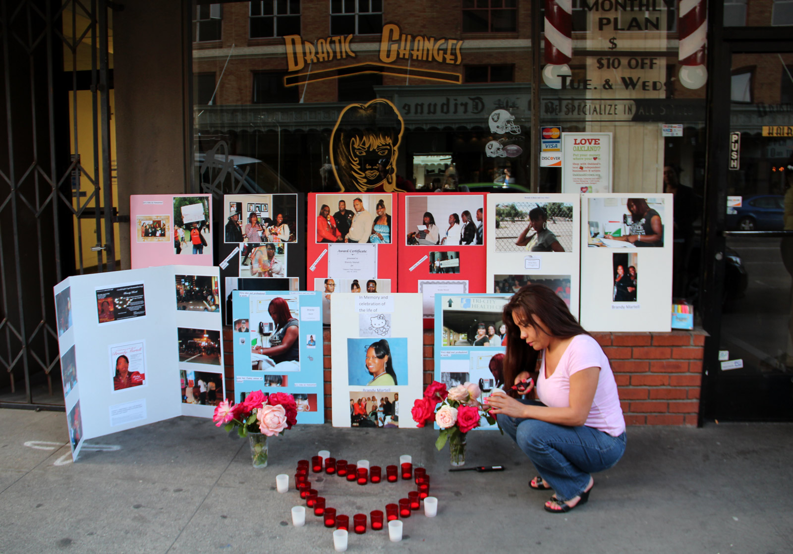 One year ago, Brandy Martell was fatally shot in downtown Oakland. On Monday, the anniversary of her death, a candlelight vigil was held at Franklin and 13th Streets, the scene of her murder.
