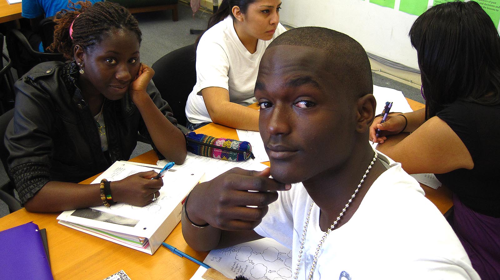 - Jamaree Strickland poses for a photo while at Metwest High School. His final project was a presentation about social health care. “I picked that because of my injury,” he said. “I went one month without pain pills, and thought ‘Why don’t I have any health care?’ That made me mad.” (Photo provided by: Ashley Kaplan)