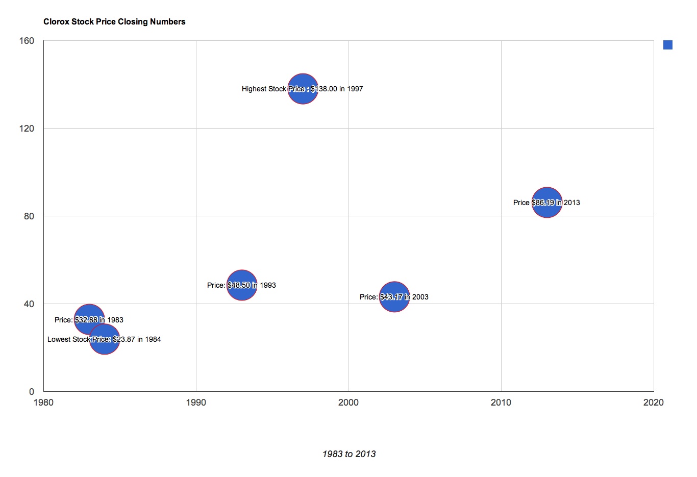 - All numbers are for closing prices on/around the company anniversary date with the exception of the high and low numbers.