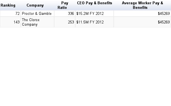 | 143 | The Clorox Company | 253 | $11.5M FY 2012 | $45269 |