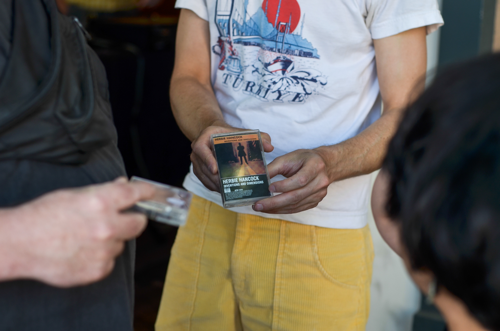 - Todd Hudson of VAMP holds this Herbie Hancock cassette tape out for prospective buyers.