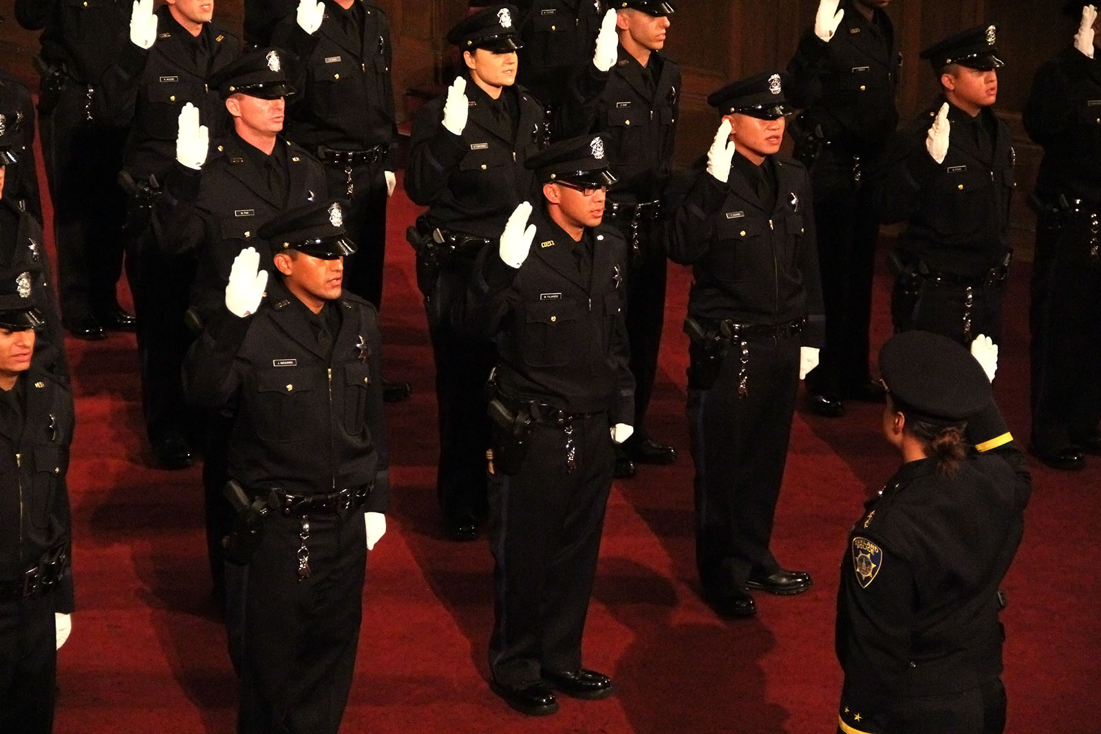 - Officers raise their right hands and are sworn in to the Oakland Police Department.