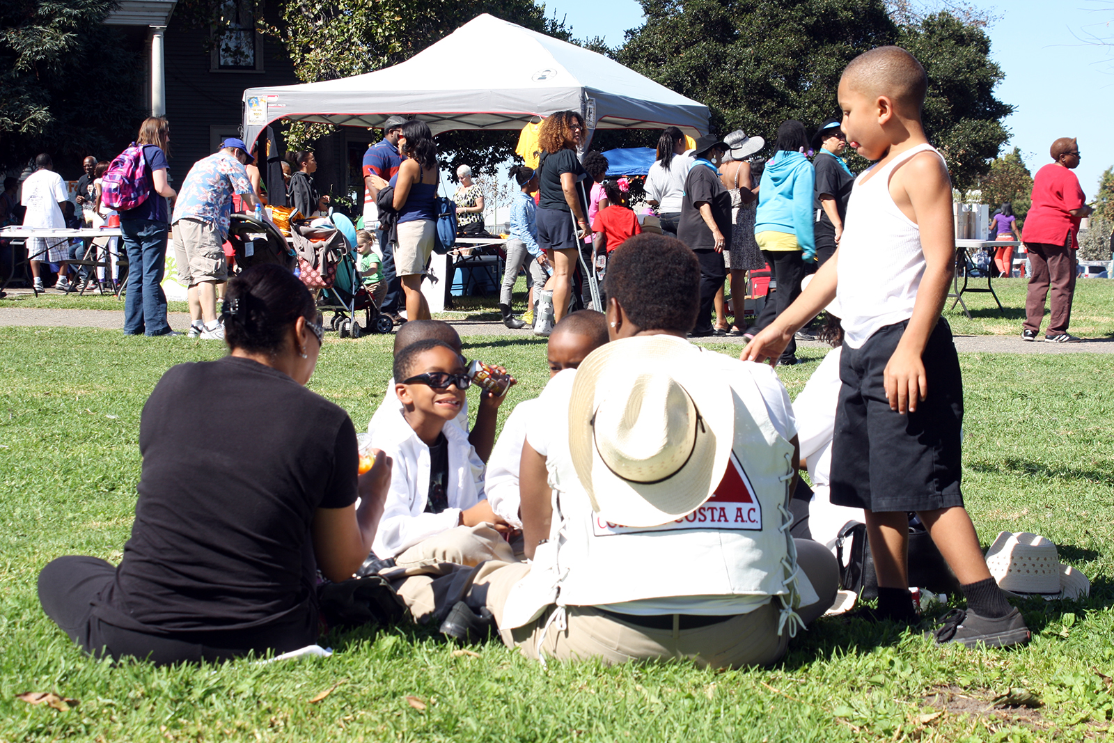 - A family enjoys the Oakland Black Cowboy Association’s festival at DeFremery Park after the parade.