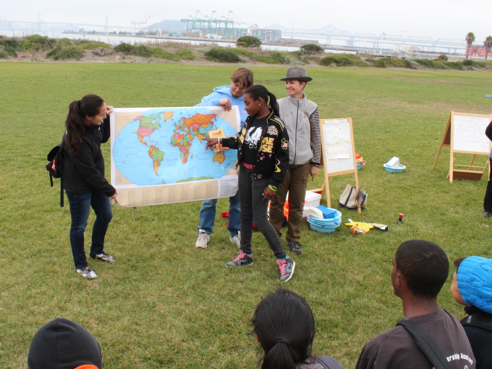 “The kindergarteners get so excited when they find a crab in the sand,” he says. On a recent day, students from Melrose Leadership Academy came to learn about labor and trade in Oakland. First the students looked at photos of the port from decades ago and learned about the history of the Pullman porters, the first all-black union. Later they ran a relay race to illustrate international trade.