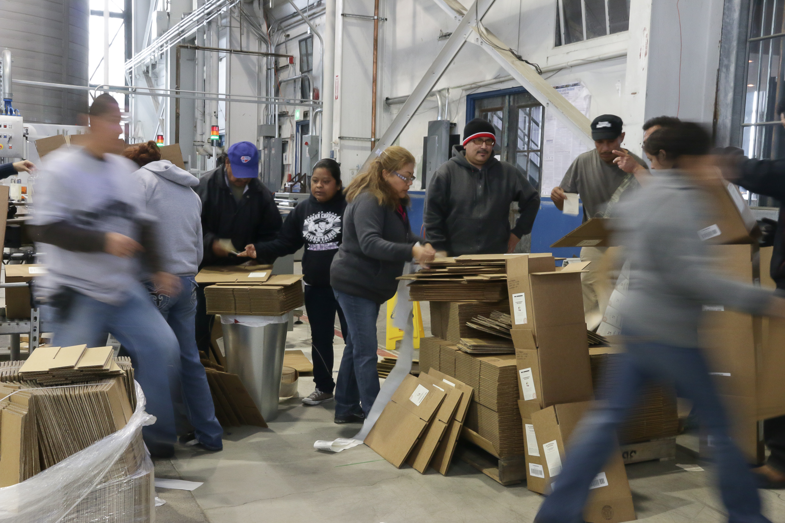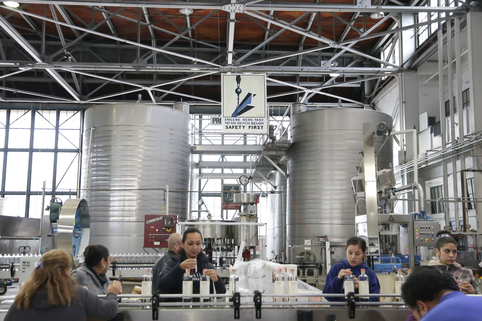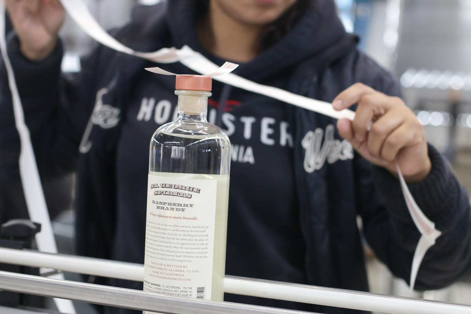 - Workers at St. George Spirits in Alameda package Raspberry Brandy.