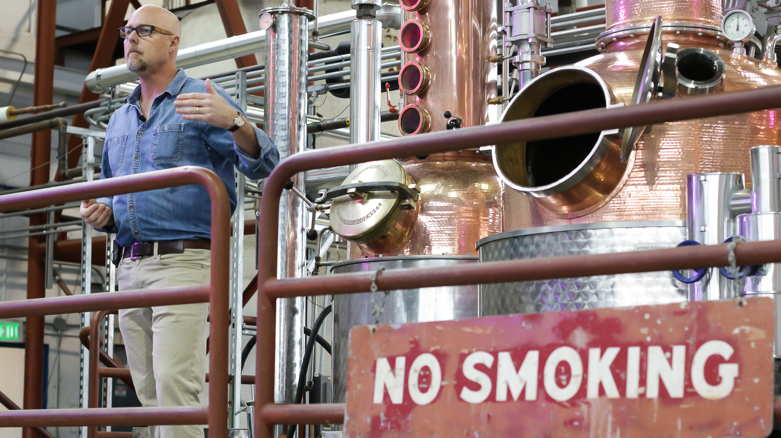 - Lance Winters of St. George Spirits in Alameda gives visitors a tour of the distillery housed in a formal naval hangar.