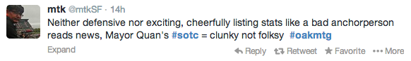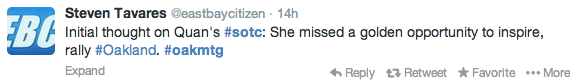 Oaklanders took to Twitter to comment on the State of the City address yesterday. Check out a selection of tweets — some supportive, some critical, some sarcastic — below.