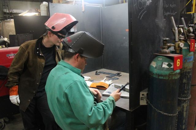 - Haley Grebe, 25 helps her student with a tig welding technique. TIG welding can be used to fuse high-quality, clean welds on most materials, including steel, stainless steel, aluminum, copper, brass, bronze, and gold
