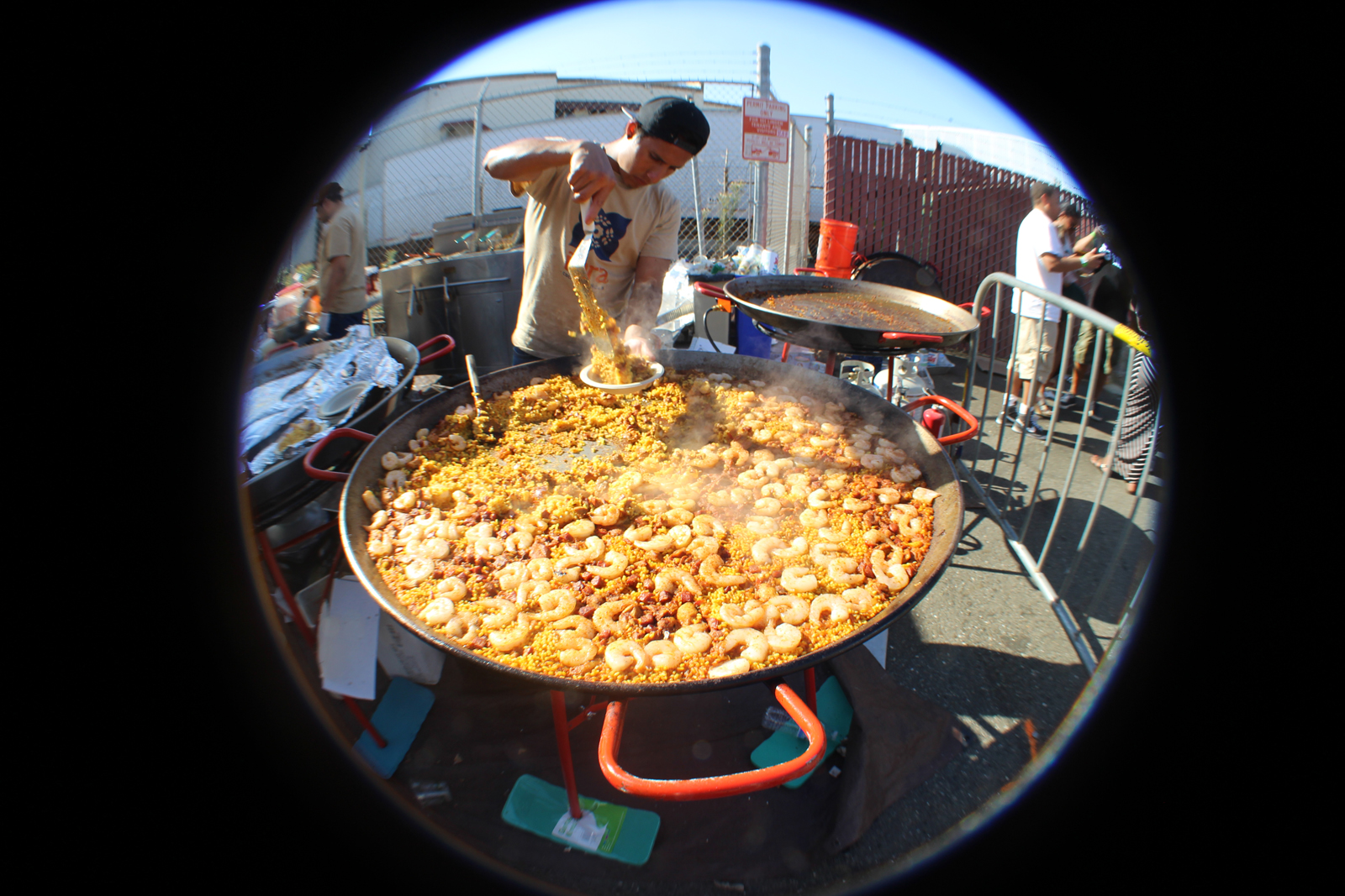 - Paella, a typical Spanish dish, is served at one of the food trucks of the event. Photo by Melina Tupa