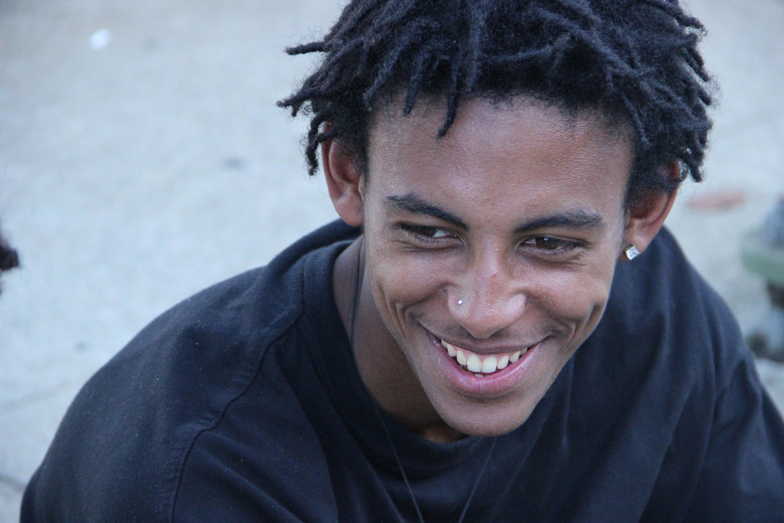 - Jay Kaly, 17, sits on the sidewalk in-between shows. Photo by Melina Tupa