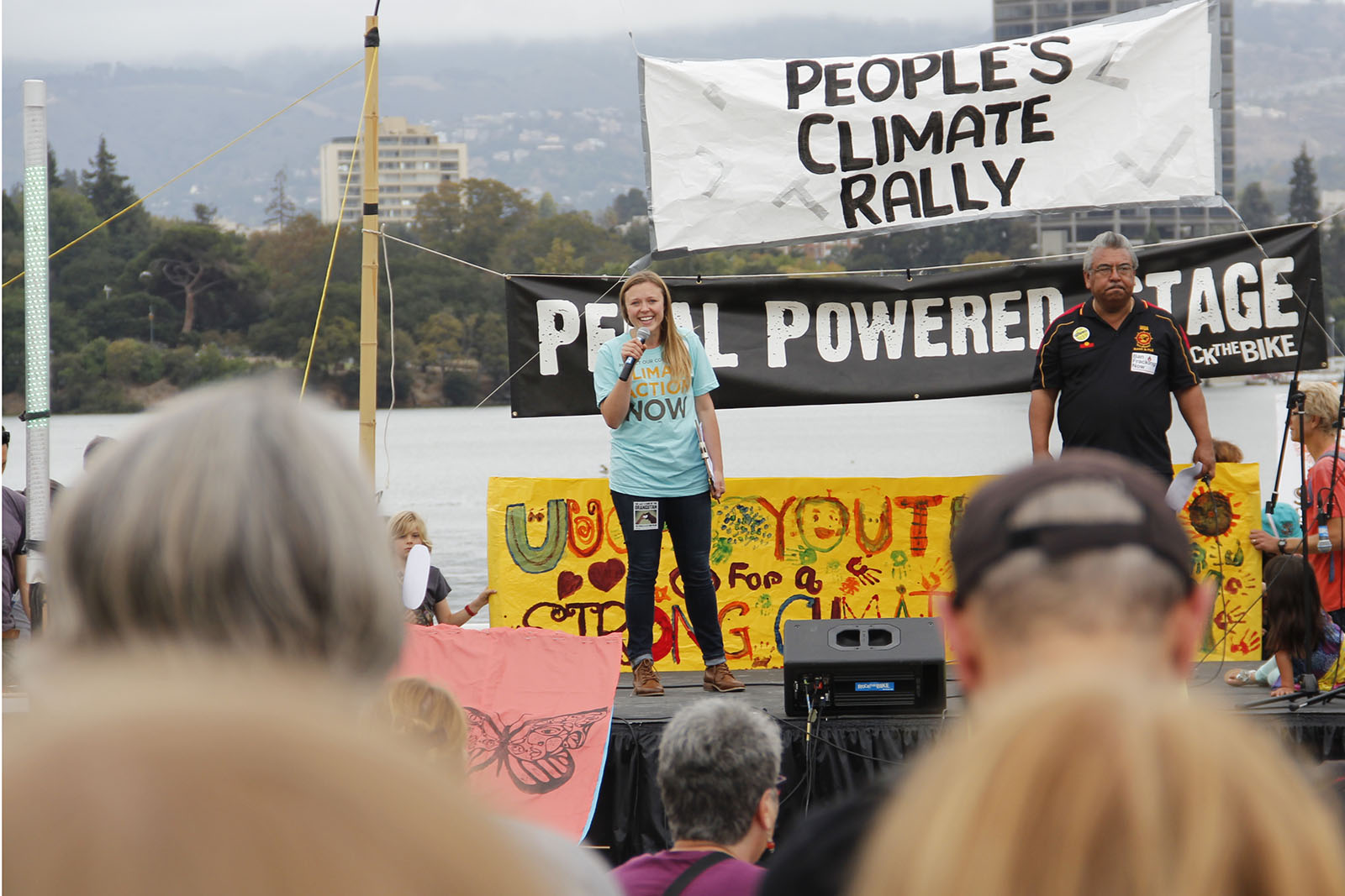 A wide range of speakers, youth activists and local musicians took to a stage at the edge of Lake Merritt’s murky waters this Sunday in Oakland to speak out against climate change at the Northern California People’s Climate Rally.