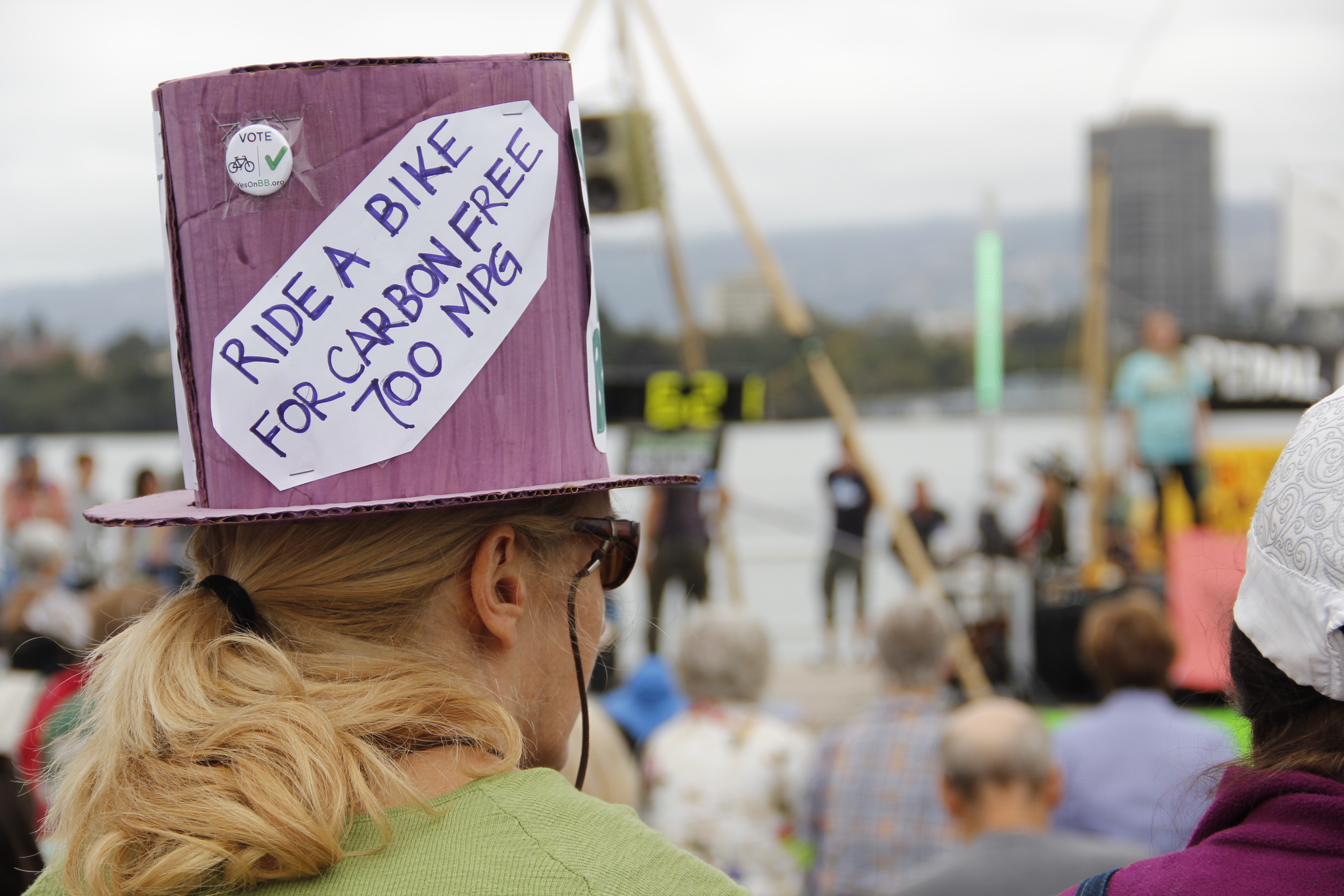 For three hours, the sounds from the bicycle-powered stage mingled with the excited chatter of more than 4,000 people representing 150 groups from all over the Bay Area that had endorsed the rally. The crowd, which filled the grassy lawn at the outdoor amphitheater, stood in solidarity for a global day of action alongside similar rallies worldwide. The gatherings—the largest of which took place in New York City, with an estimated 300,000 people marching through Manhattan—were held to put pressure on world leaders who will meet for a UN Climate Summit this Tuesday in New York.
