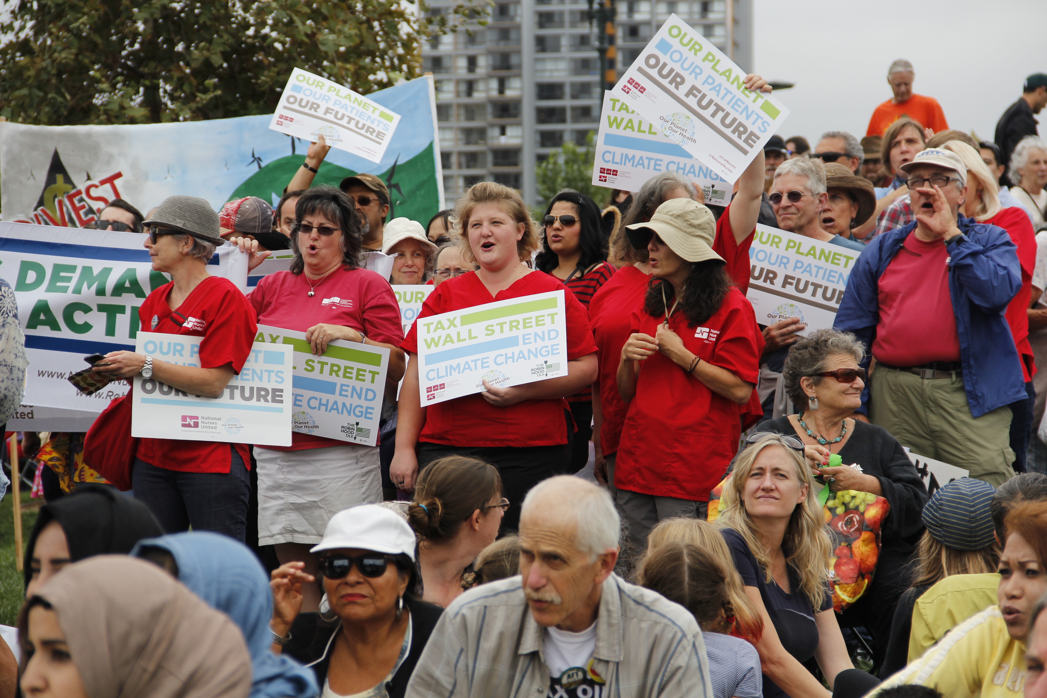 Jeff Mackler, an organizer of the Northern California People’s Climate Rally, said in the run-up to the gathering that he and other members of its steering committee chose Oakland not only because of its rich history of grassroots organizing, but because of its diversity. “We would really like for this rally to show that climate change is an issue that affects everyone,” Mackler said. In keeping with the committee’s goals, the roster of speakers represented a wide range of groups, including nurses, indigenous activists, local young people, and faith-based organizations. While some attendees complained that the speakers failed to offer a clear path forward to address climate change, many saw it as a chance to bring together separate movements around a common cause.