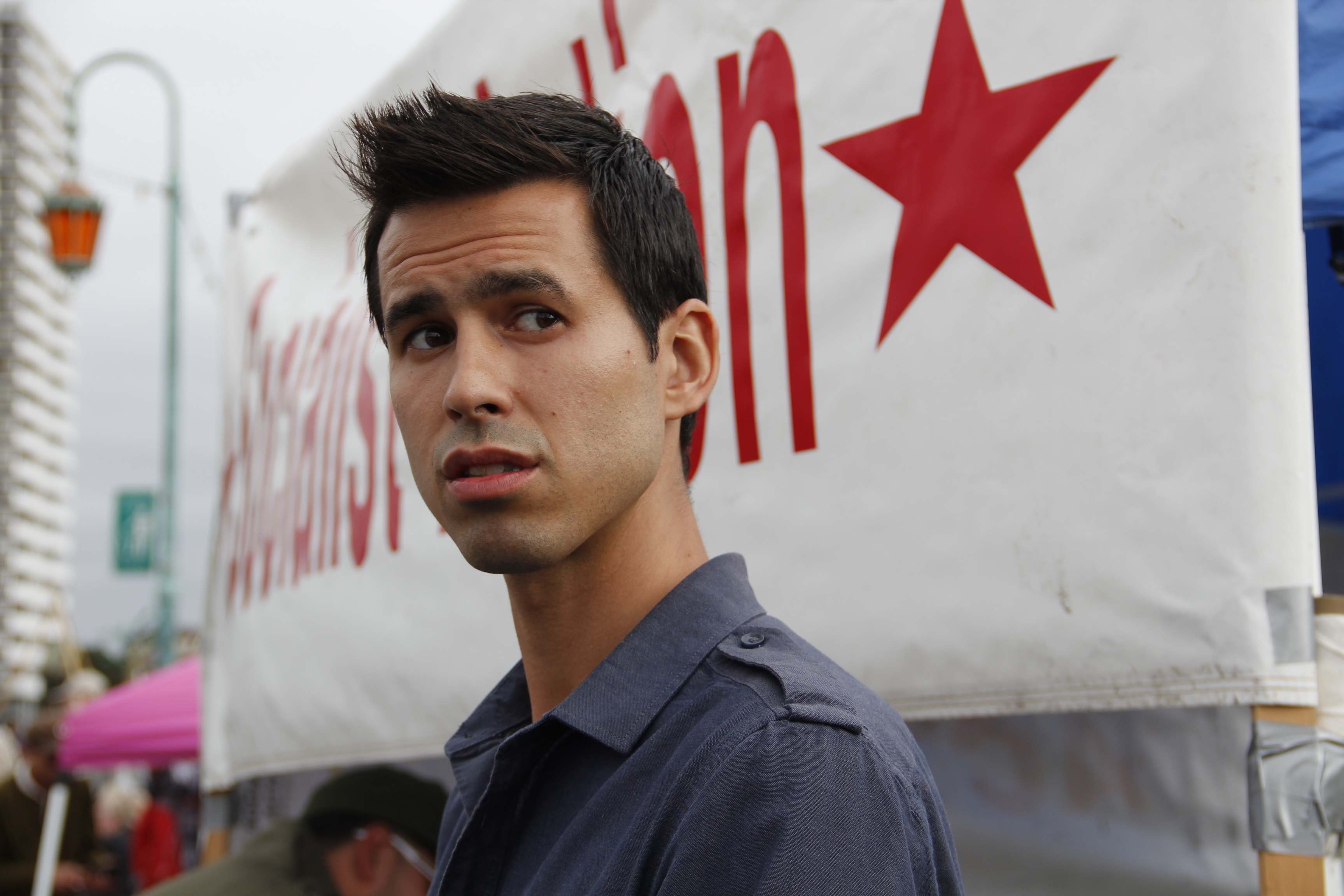 - Sky Keyes, volunteer from Socialist Action, hands out flyers in front of the booth.