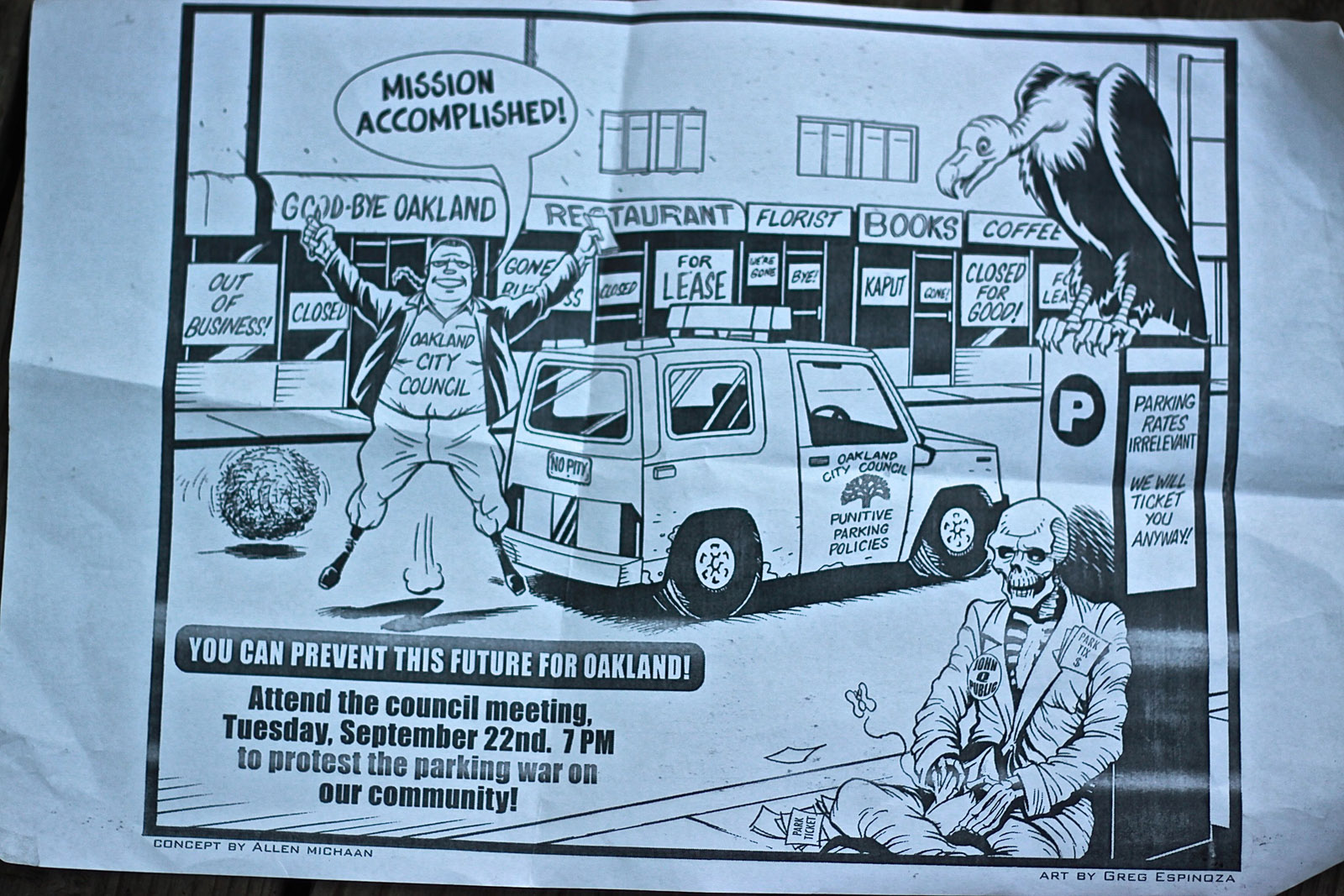 Michaan, who has been a vocal opponent of the city’s parking practices in recent years, added his own remarks to Tuman’s press release. “Exorbitantly high hourly meter rates and absurdly high ticket prices for overdue meters are forcing Oakland residents to take their business to neighboring cities rather than shop in their community,” Michaan declared.
