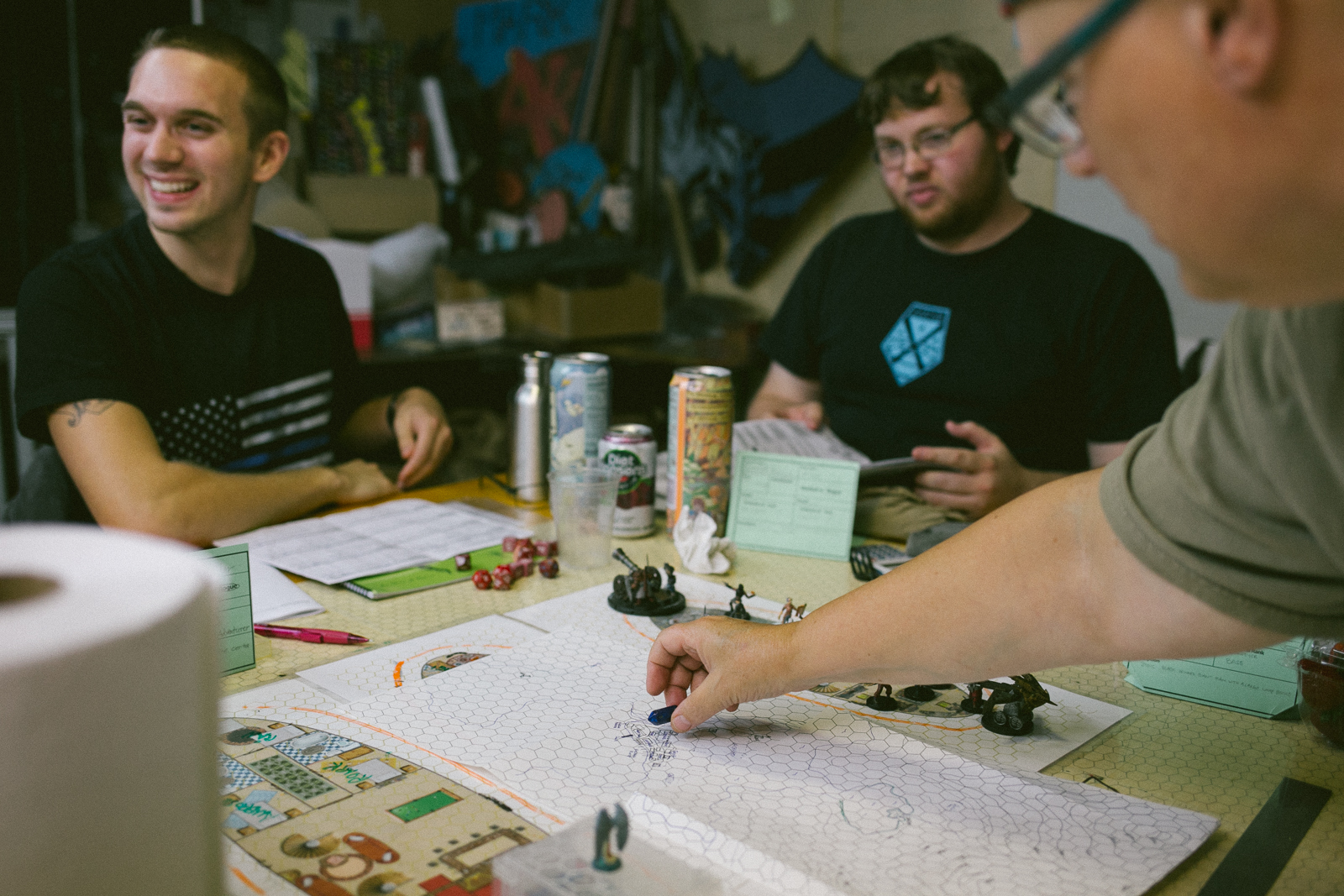 Eli was introduced to The Roleplay Workshop through Tai’s persistent lobbying on the school bus. “It’s fun, it’s surprisingly rational,” Eli said. “Decisions aren’t based on your skill or something. It’s based on what the environment is like.” For example, he went on, a character’s ability to sneak by a potential enemy would not be based solely on their sneaking skill, but also upon the enemy’s placement, direction of their attention, the weather and the environment.