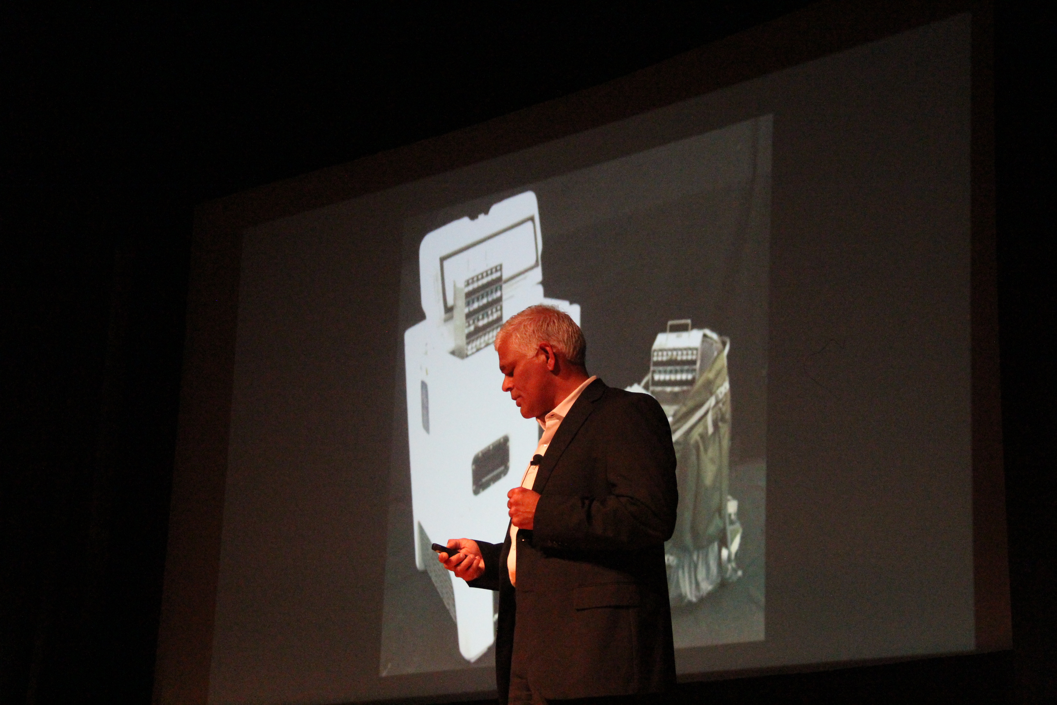 - Shashi Buluswar introduced a solar refrigerator to the audience.