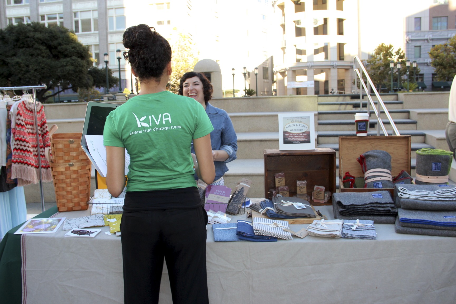 - A Kiva representative speaks with Kerri, an Oakland business owner.