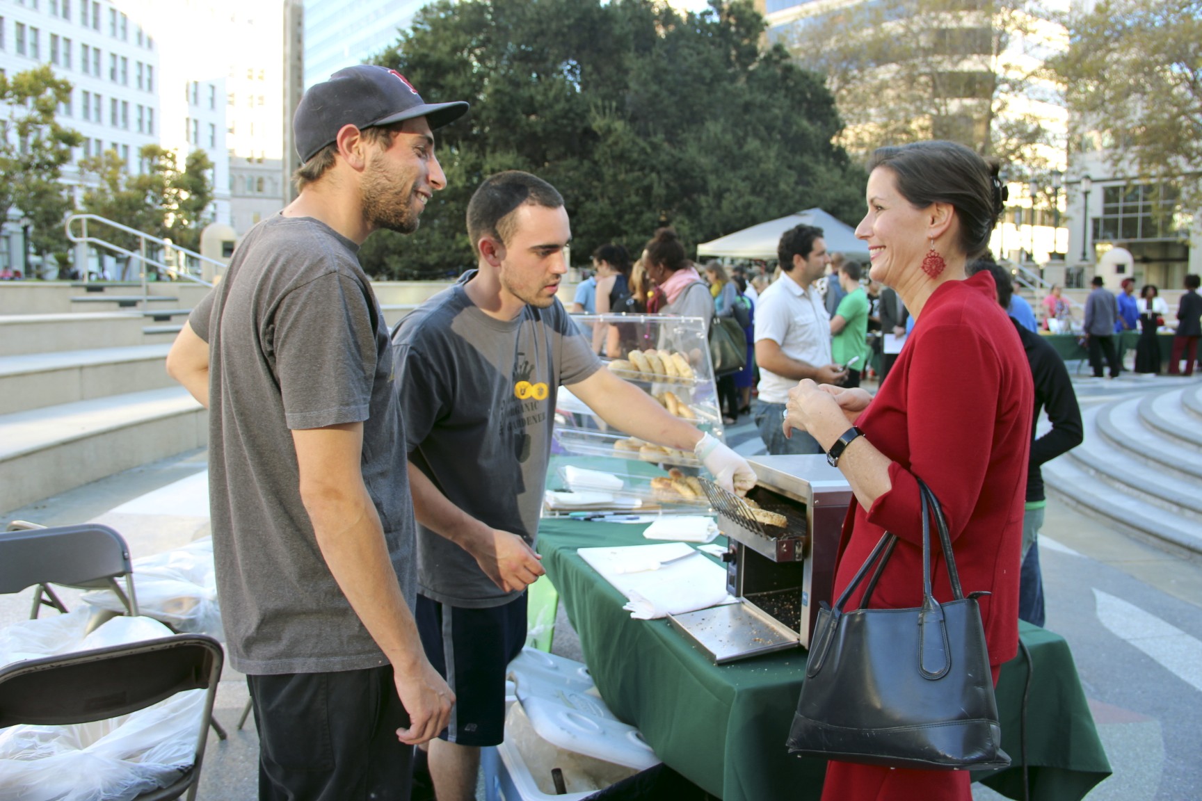 As the party dissolved and the air cooled, the smell of toast wafting across City Hall plaza lured hungry Oaklanders to a line behind the Scott brothers’ toaster.