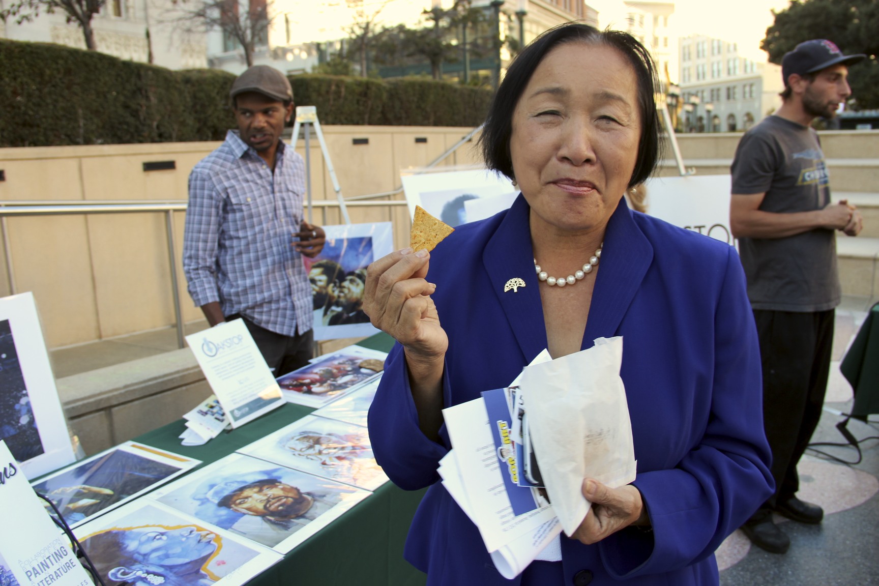 - Mayor Quan enjoys Tina Tamale cornchips at last week’s Kiva Zip event.