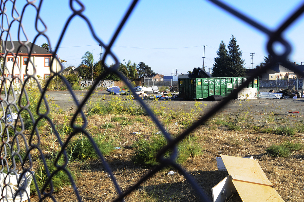 “Asthma rates are alarmingly high here, because of pollution and lack of trees. Poverty levels are also very high,” he said as he drove along San Leandro Avenue, between I-880 and the BART railroad tracks. Here, industrial plants are located near homes, and many empty lots have been transformed into illegal dumps.