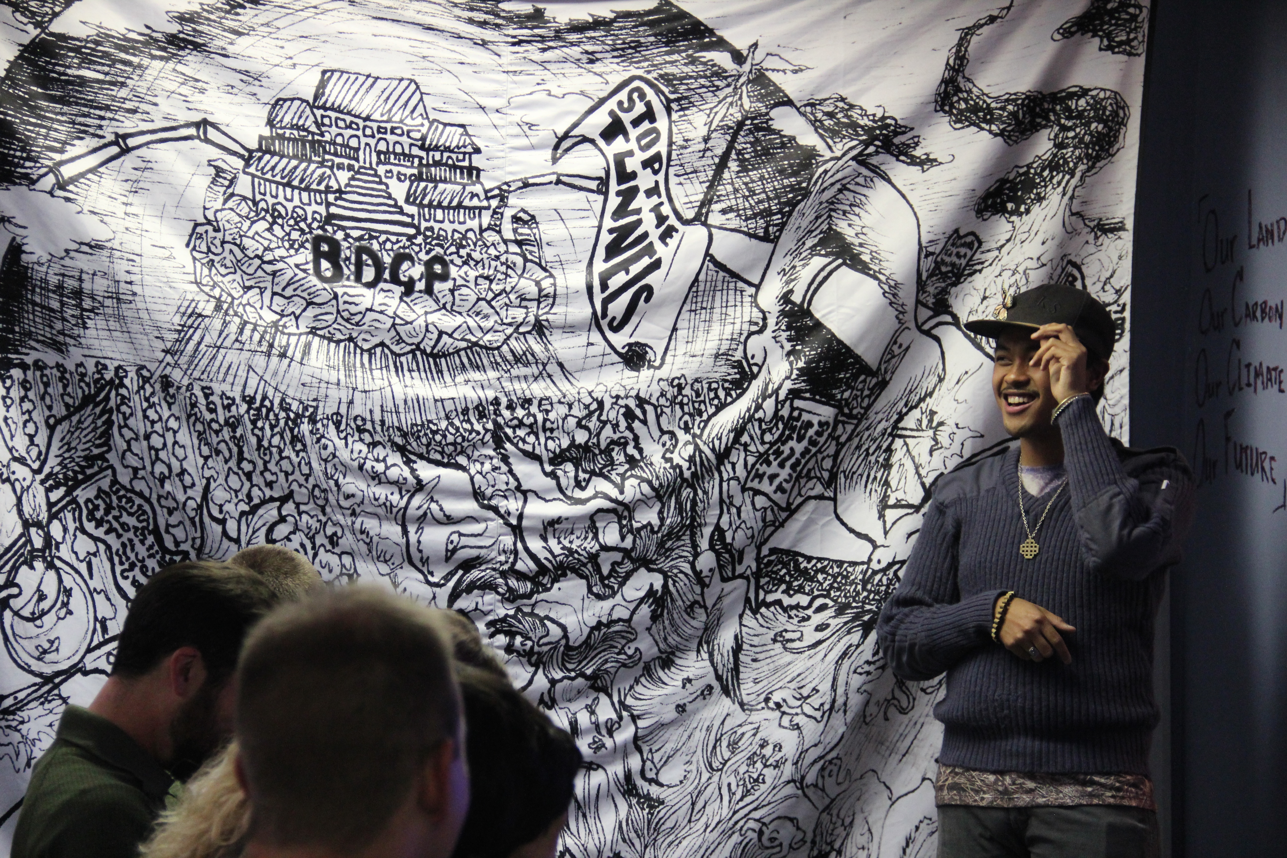 If a picture is worth a thousand words, the Beehive Collective’s posters are whole books. At a rally at the Greenpeace Warehouse in West Oakland last last month, three presenters took turns explaining the giant canvasses behind them and comparing struggles for control of natural resources from around the world with California’s ongoing conflicts over water rights.