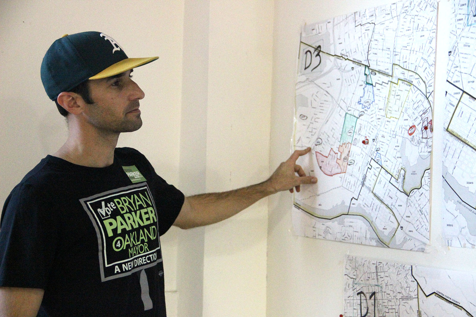 - Dan Bellino, Bryan Parker’s campaign manager checks their strategy on the map. Photo by Melina Tupa.