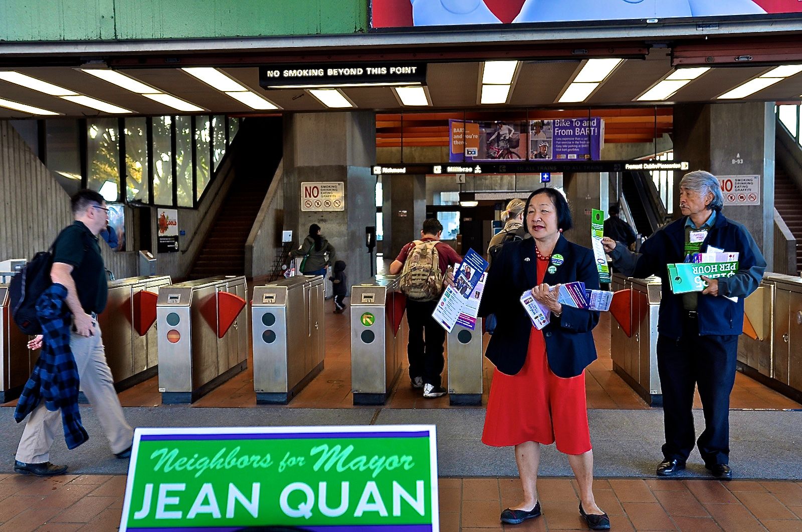 - Mayor Jean Quan campaigning at Fruitvale BART station early this morning. Photo by Gabriela Arvizu.