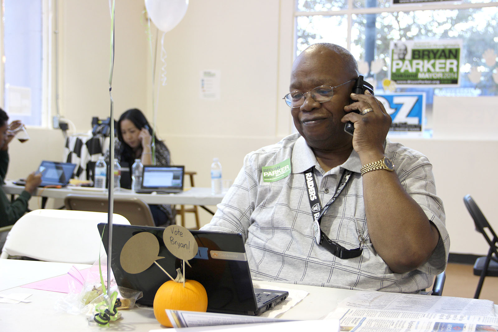 Shortly before the polls closed at 8 p.m., candidates and their supporters began to gather for their victory parties. At his headquarters, where volunteers were making last-minute phone calls around 6:30 p.m., mayoral candidate Bryan Parker encouraged his supporters to keep working through the end of the polling day. “We have an hour and a half,” he said. “Let’s stay focused and make phone calls, guys.”