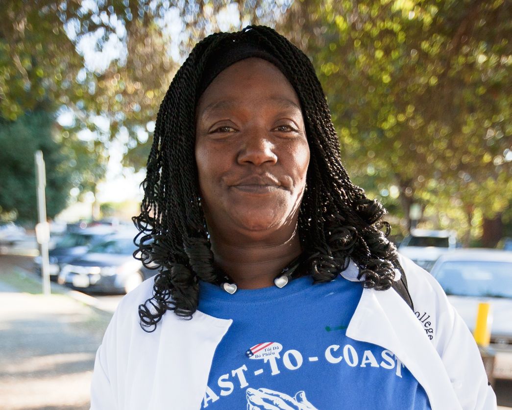 - Chef Yolanda Peterson, says she feels “wonderful” about voting. “I feel like my little voice should be heard too.” Photo by Gina Pollack.