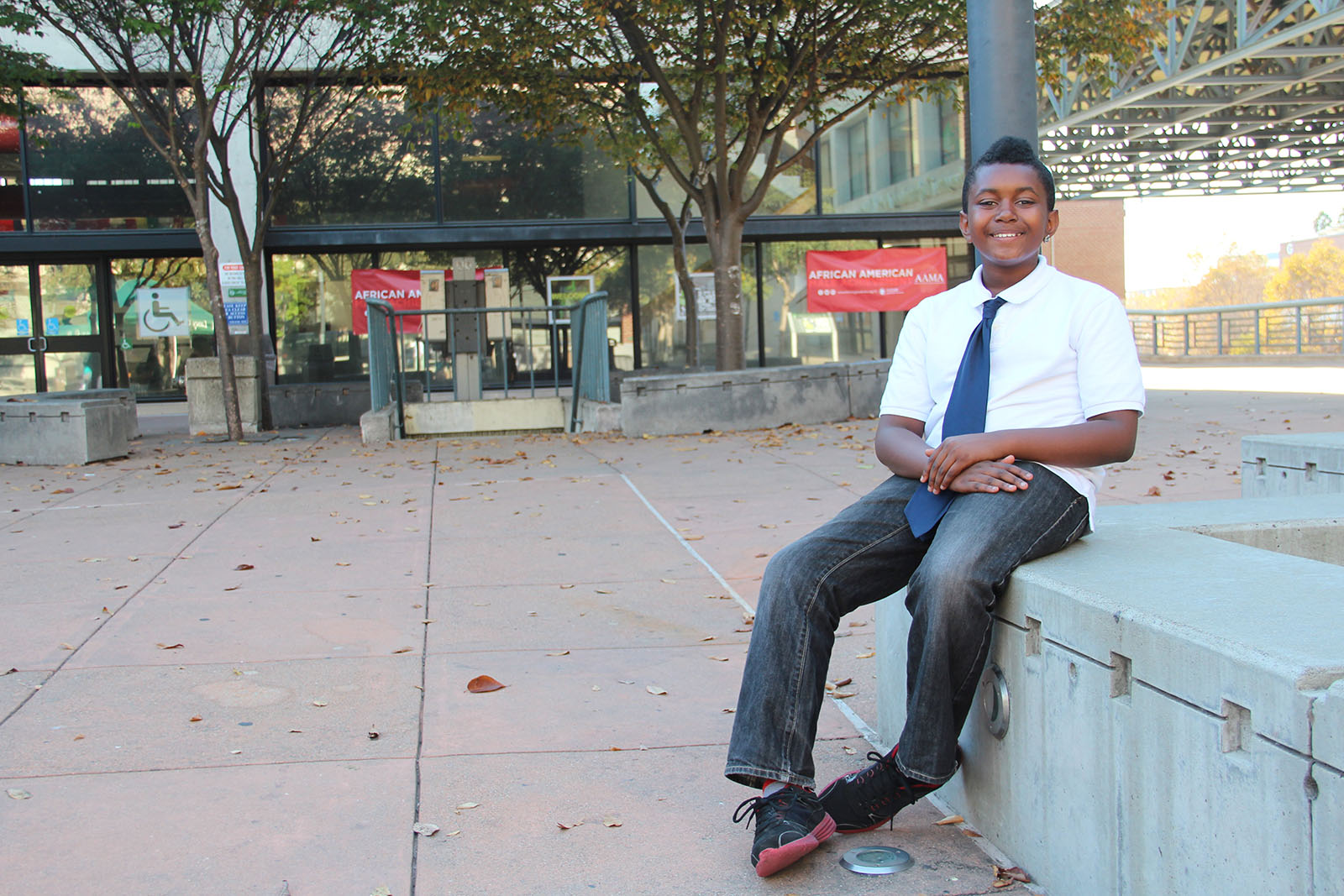 Taking a break from the programming, 12-year-old Tre Germany played in the quad with some young friends. Germany is in the 7th grade at Claremont Middle School and participates in AAMA’s Manhood Development Program, a class that focuses on identity, African-American history, being mentored by the adults who teach the course, and life skills, like how to tie a tie and how to tell your personal story through social media. Instructors guide students to think about college and careers, too. Germany is also on AAMA’s student leadership council, a group that meets twice a month and represents their schools and what they’ve learned through the program.