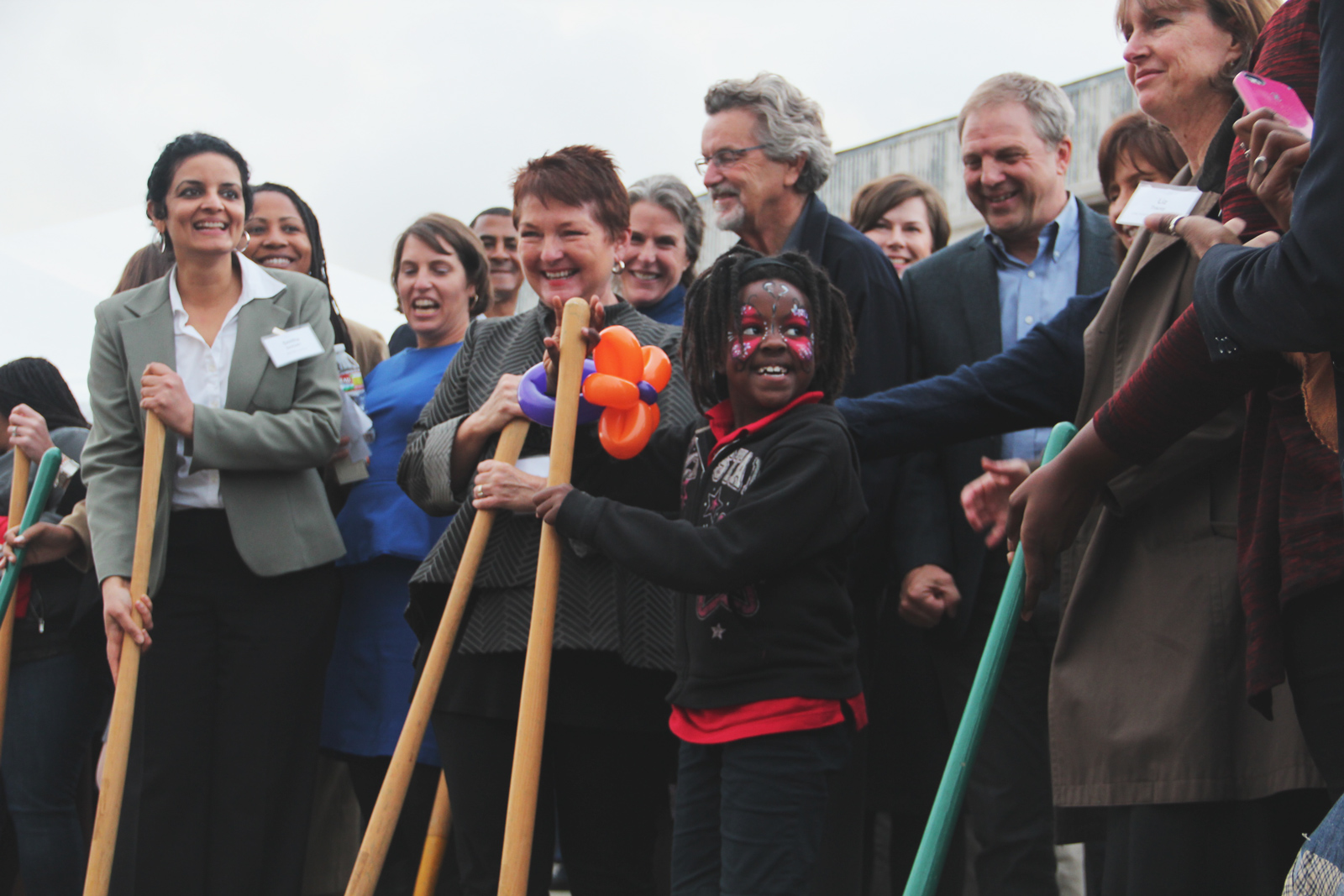 As the adults mingled before the ceremony, a table for kids kept them busy with colored markers and animal balloons, and volunteers painted their faces with butterflies, animals, and superheroes. Before the official groundbreaking, Kate Nicol, the head of Vincent Academy, spoke to a crowd of over 100 supporters, students and parents, who hushed their young children. “It’s just such a remarkable feat to be building a new school right here in the heart of West Oakland for the children and families that live here now, and for children and families for generations to come,” Nicol said. “That to me is really exciting.”