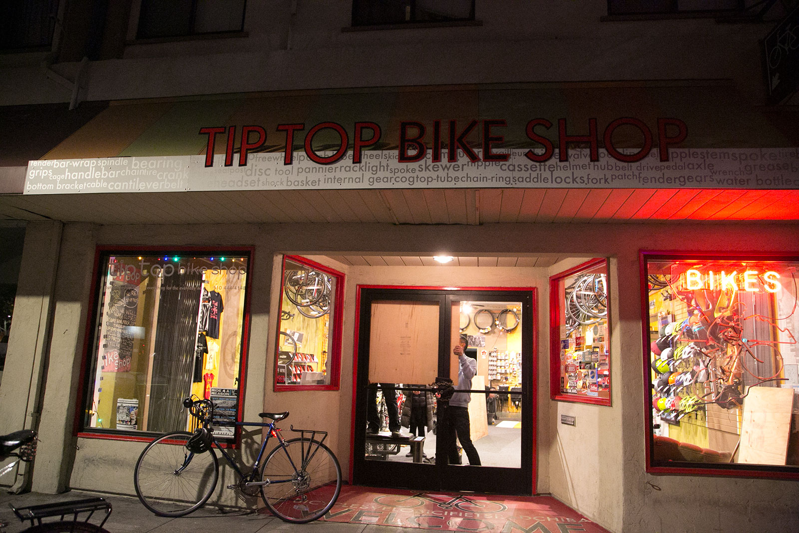 - People at the Tip Top Bike Shop boarded up windows. Photo by Alyssa Jeong Perry.