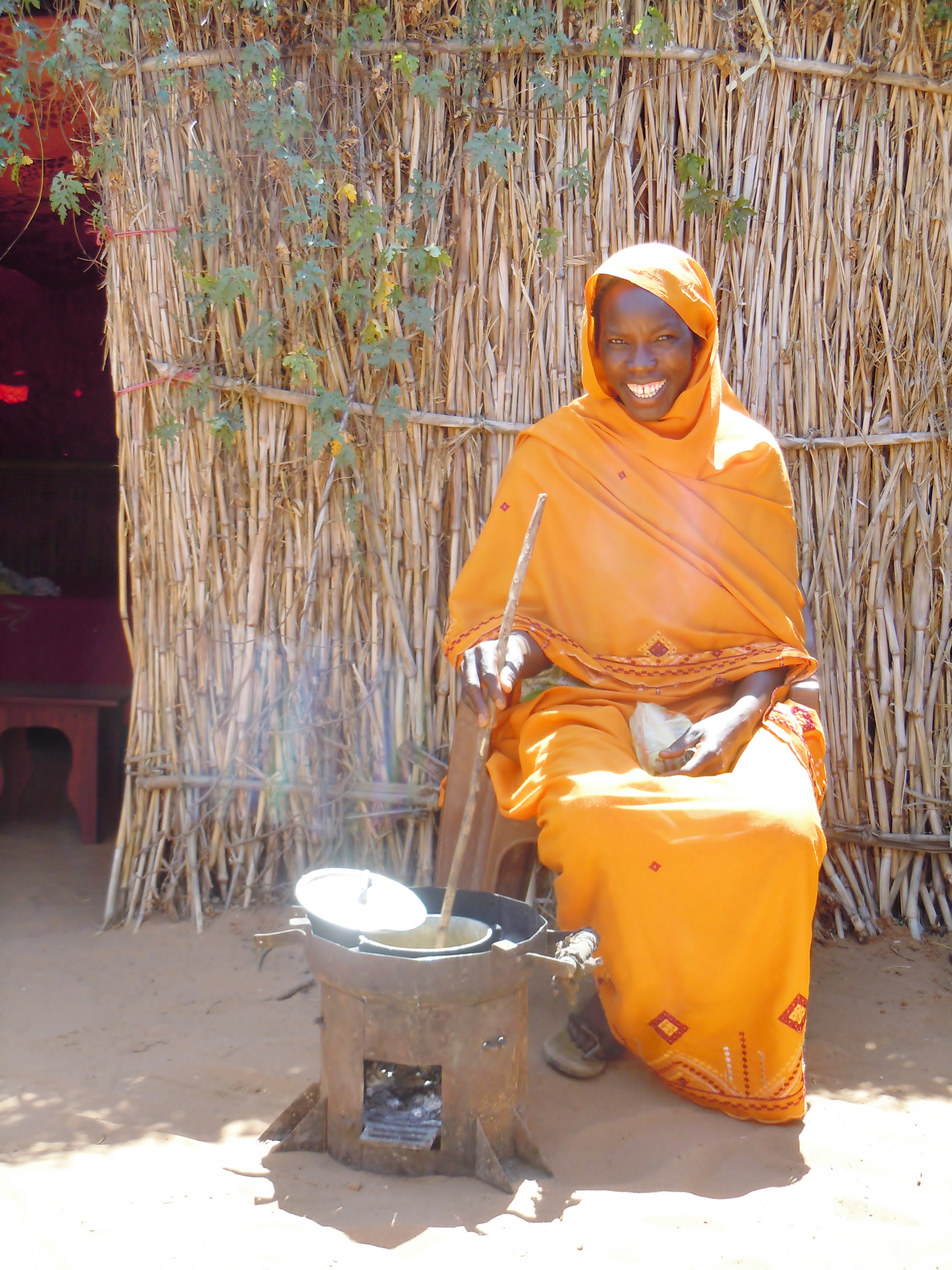 - Asha using the a stove for cooking in northern Darfur, photo by: Potential Energy