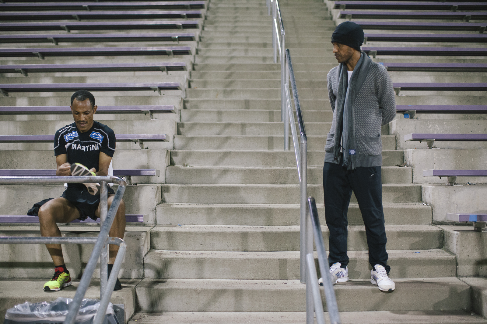 - Habte times Teklay as he runs around the track, yelling “faster, faster,” in Tagrigna. Teklay clocks a mile warmup at 4:20. In a race, he runs about 4:30 per mile, to pace himself.